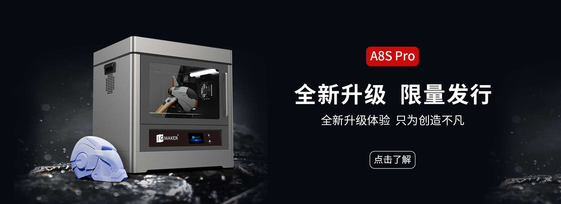 JG-L5 Pro 采用10.1寸6K透光固化屏,理論精度可高達0.045mm;增加打印、清洗、固化 三合一功能,內置攝像監控;對斷料檢測傳感器模塊做了升級,以及缺料會自動提示加料。