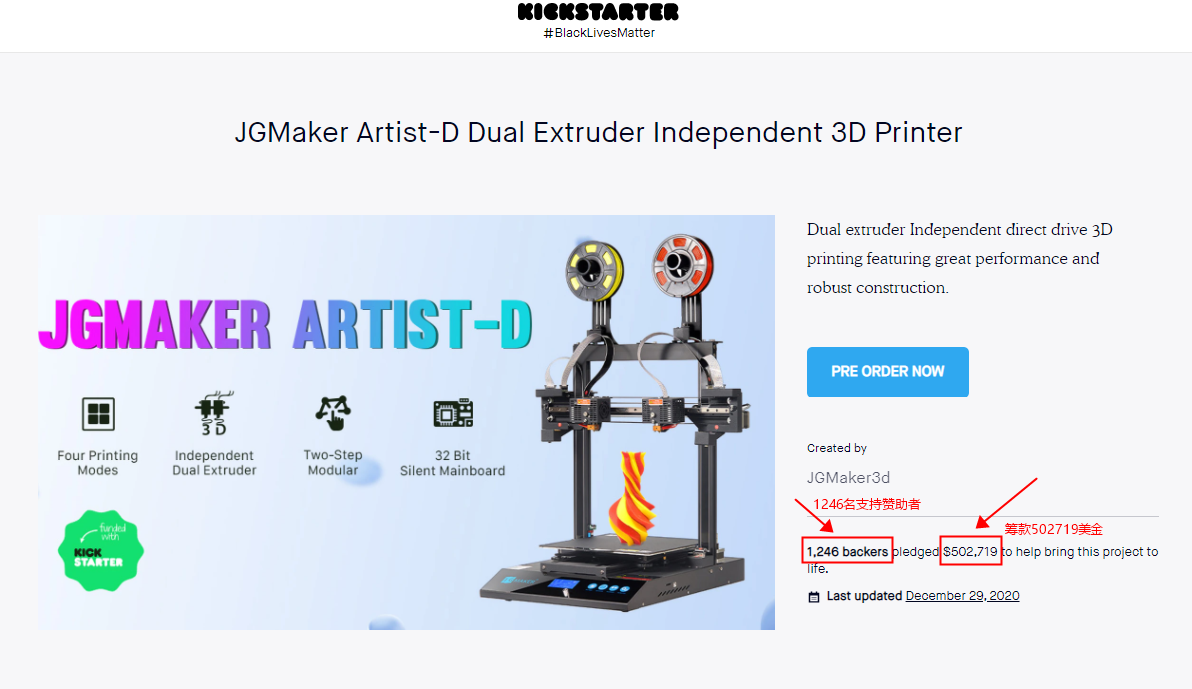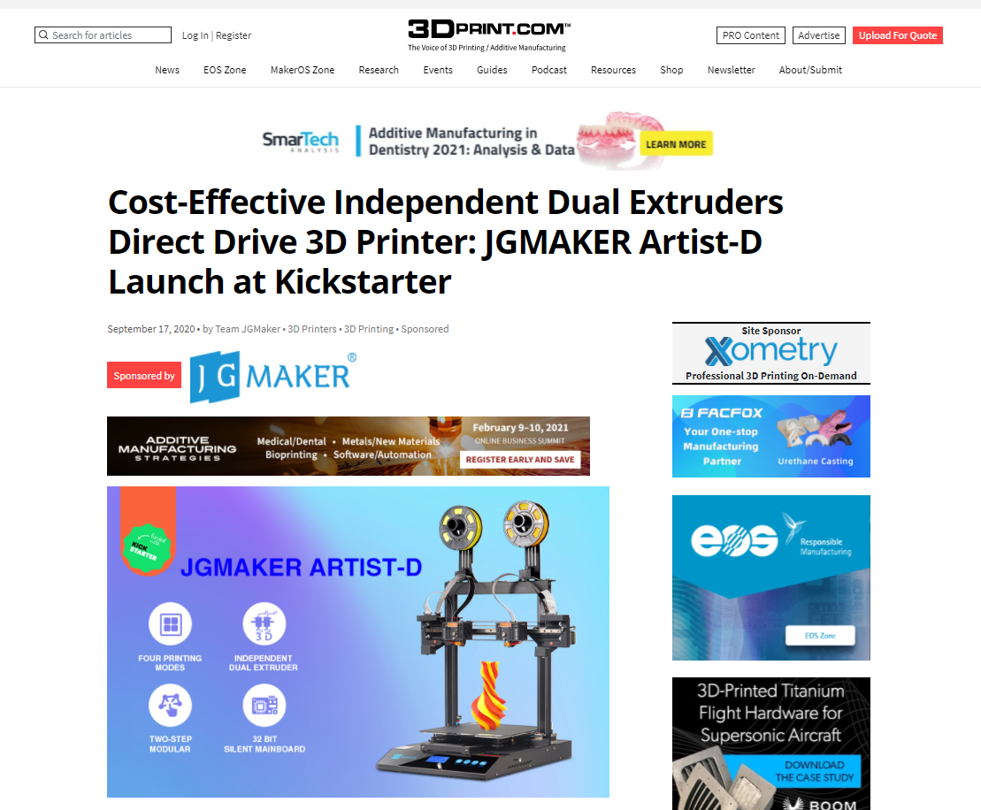 (https://3dprint.com/273028/cost-effective-independent-dual-extruders-direct-drive-3d-printer-jgmaker-artist-d-launch-at-kickstarter/)