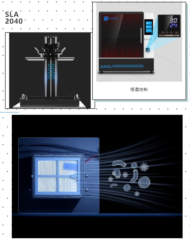 極光創新SLA 2040采用全鈑金封閉式機箱設計,高端核芯搭配智能算法,加上內置的溫度控制系統可保障打印作品穩定輸出,四季從容。
