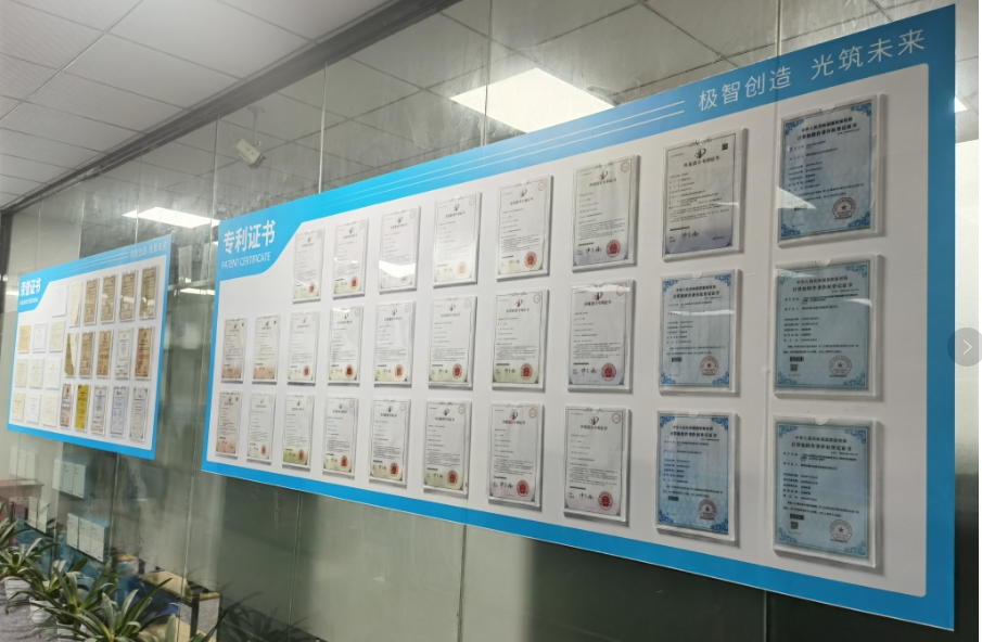 在極光創新深圳總部的新形象中,滿墻的證書和榮譽資質更是成為了一道亮麗的風景線。這些榮譽資質涵蓋了技術創新、品質保證、市場認可等多個方面,不僅見證了極光創新在行業內的卓越表現和杰出貢獻,更彰顯了公司不斷追求卓越、勇于創新的企業精神。這些榮譽資質的展示不僅增強了客戶對極光創新的信任和肯定,也激勵著我們不斷追求卓越、不斷超越自我。