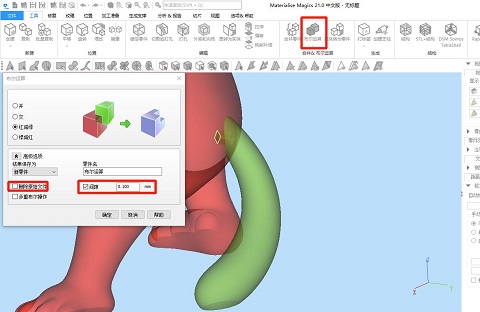 ③再通過“分離標記”功能將標記部位分離,這樣我們將得到2個帶有接口破面的模型,選中其中一個模型,移動指定距離遠方便后續操作。