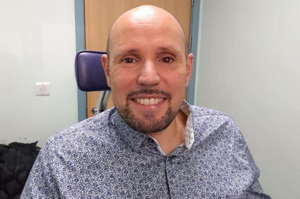 Steve Verze 收到了第一個 3D 打印的眼部假肢。照片來自 Moorfields 眼科醫院。