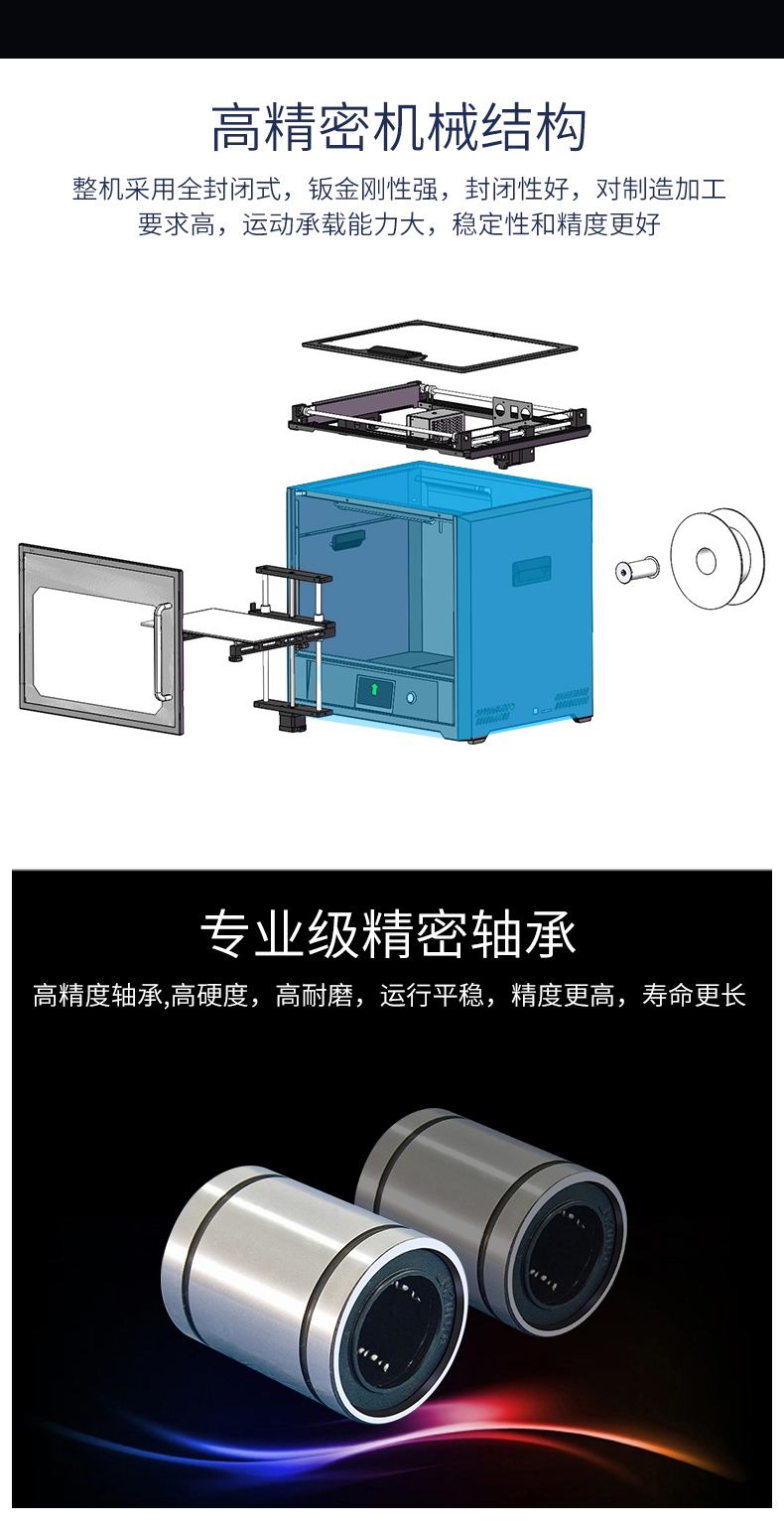 全球首創雙電機傳動送料結構,并配備高品質德國進口配件,打印精度媲美藝術品,這是一款追求“精確、精密、精致”的3D打印機。