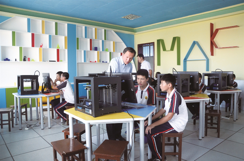 目前,“3D飛天創(chuàng)客空間”正式建成并投入使用。學生通過專業(yè)的中小學建模軟件,自己動手設(shè)計3D模型,運用3D打印機打印出茶杯、筆筒等實物,讓學生的想象變?yōu)楝F(xiàn)實。此外,在歷史、生物、地理、化學、物理等課程的教學中,輔助教具都可以通過3D打印制作出來,將抽象、難懂的教學變得直觀形象化,更好地激發(fā)學生的學習興趣。