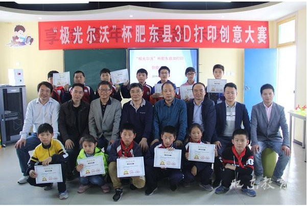 極光爾沃教育負(fù)責(zé)人和肥東縣領(lǐng)導(dǎo)、獲獎(jiǎng)老師及其學(xué)生合影留戀